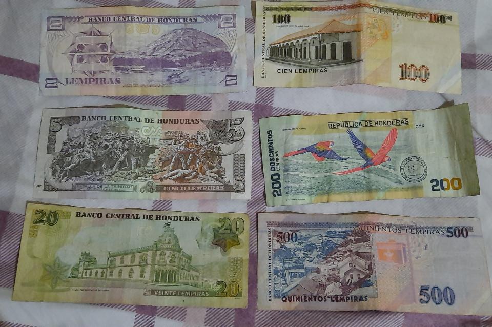 紙幣由面值1,2,5,10,20,50,100,200,500。美金也個別地方旅遊地方可用。我在Copán 用美金兌換倫皮拉。