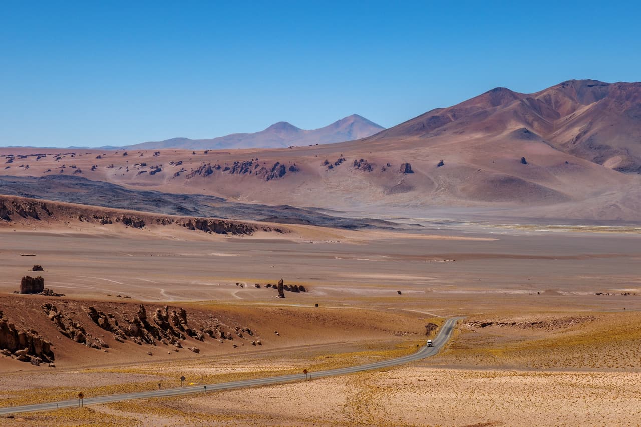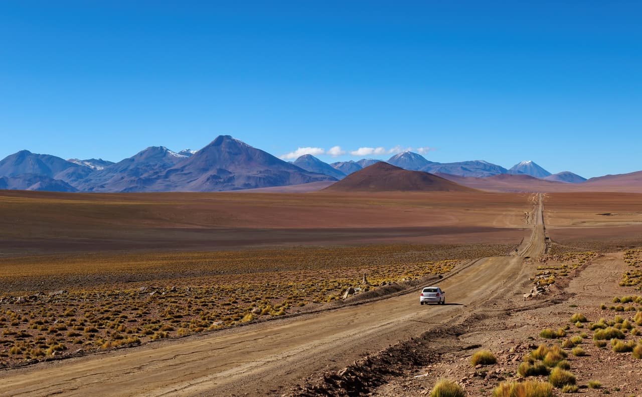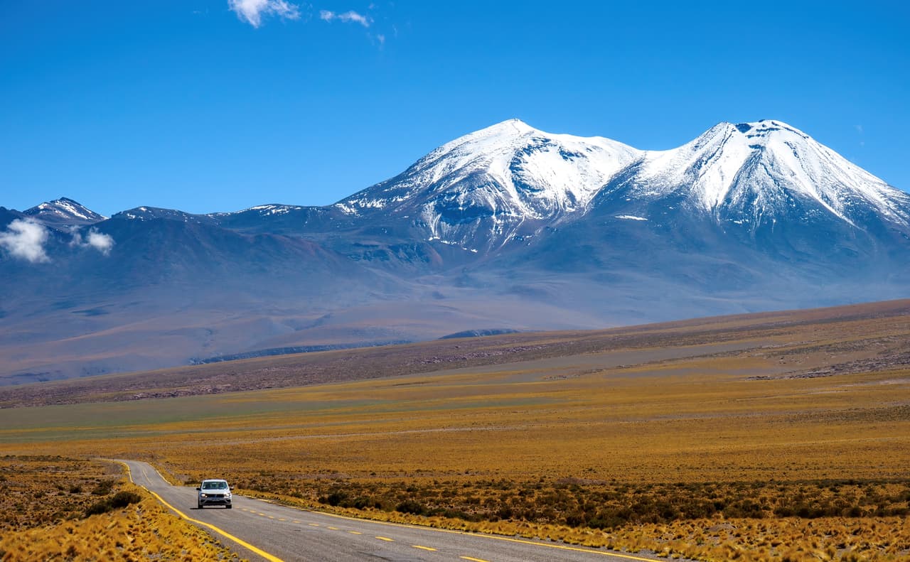 由San Pedro de Atacama出發,爬上4500m以上的高原,這條是通往阿根廷(Paso de Jama)和玻利維亞(Paso Fronterizo Hito Cajón)的主要道路,同時也是世界上除了中國以外,海拔最高的鋪裝公路,最高點達到4832m,因此務必做好高度適應、隨時注意身體及汽車狀態。