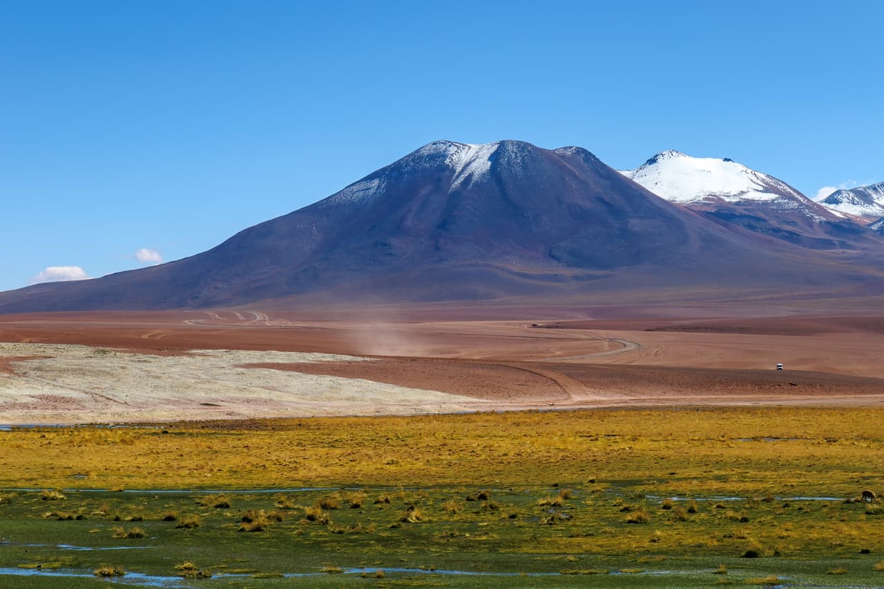 沿著Volcán Licancabur旁一路爬升,會經過海拔4650m的Paso Fronterizo Hito Cajón,這是智利前往玻利維亞的關卡,但距離真正的邊境則還有5公里