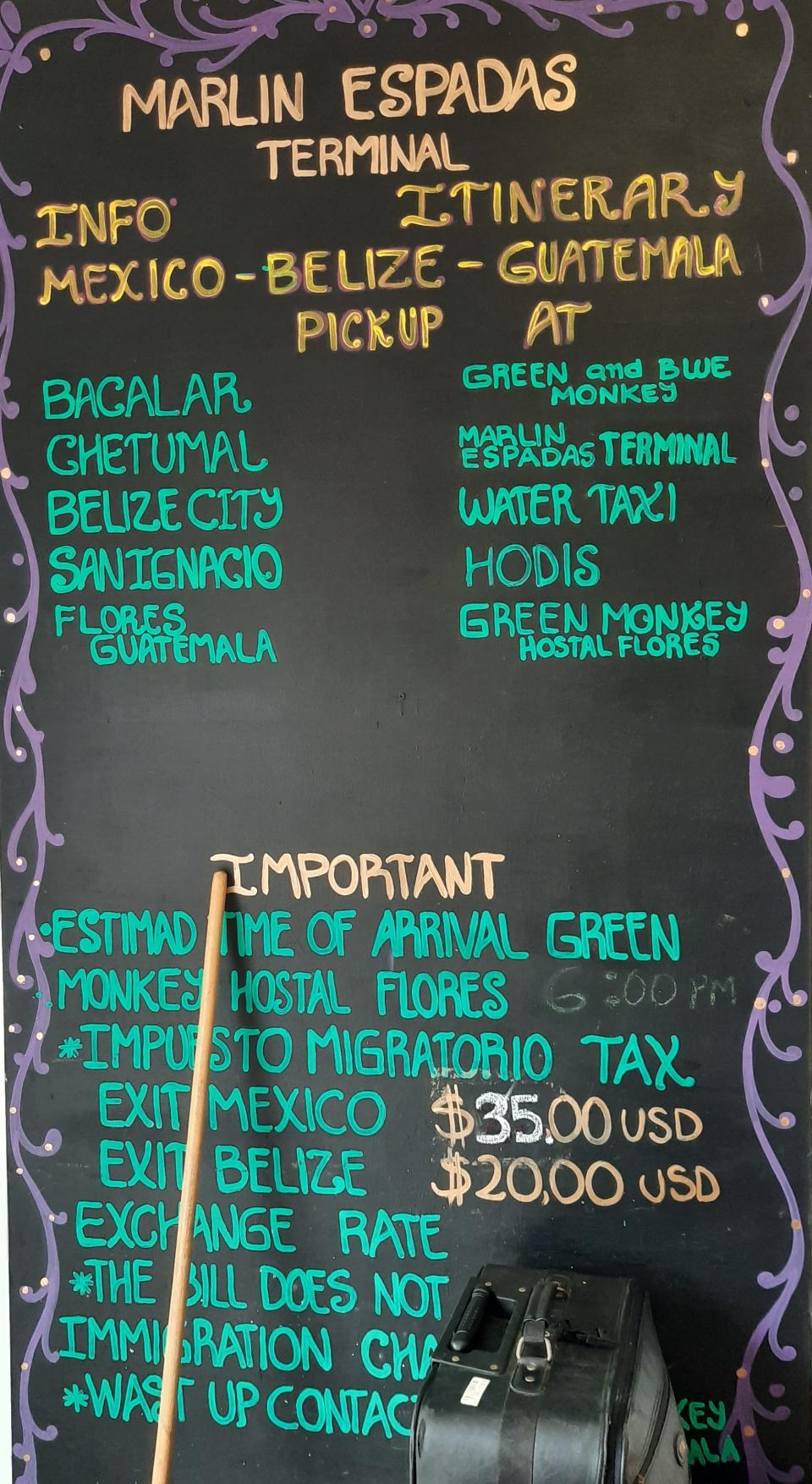在墨西哥Bacalar廣場見到提供由墨西哥到危地馬拉Shuttle服務公司Merlin Espadas,中間會停留貝里斯首都及邊境小鎮San Ignacio。訂了位交了錢便可。