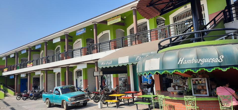 到達ESCUINTLA背包客都下車,到對面找另一個巴士等候處,我就在這商場停留等待,當地人都會叫FRONTERA ,即是邊境。