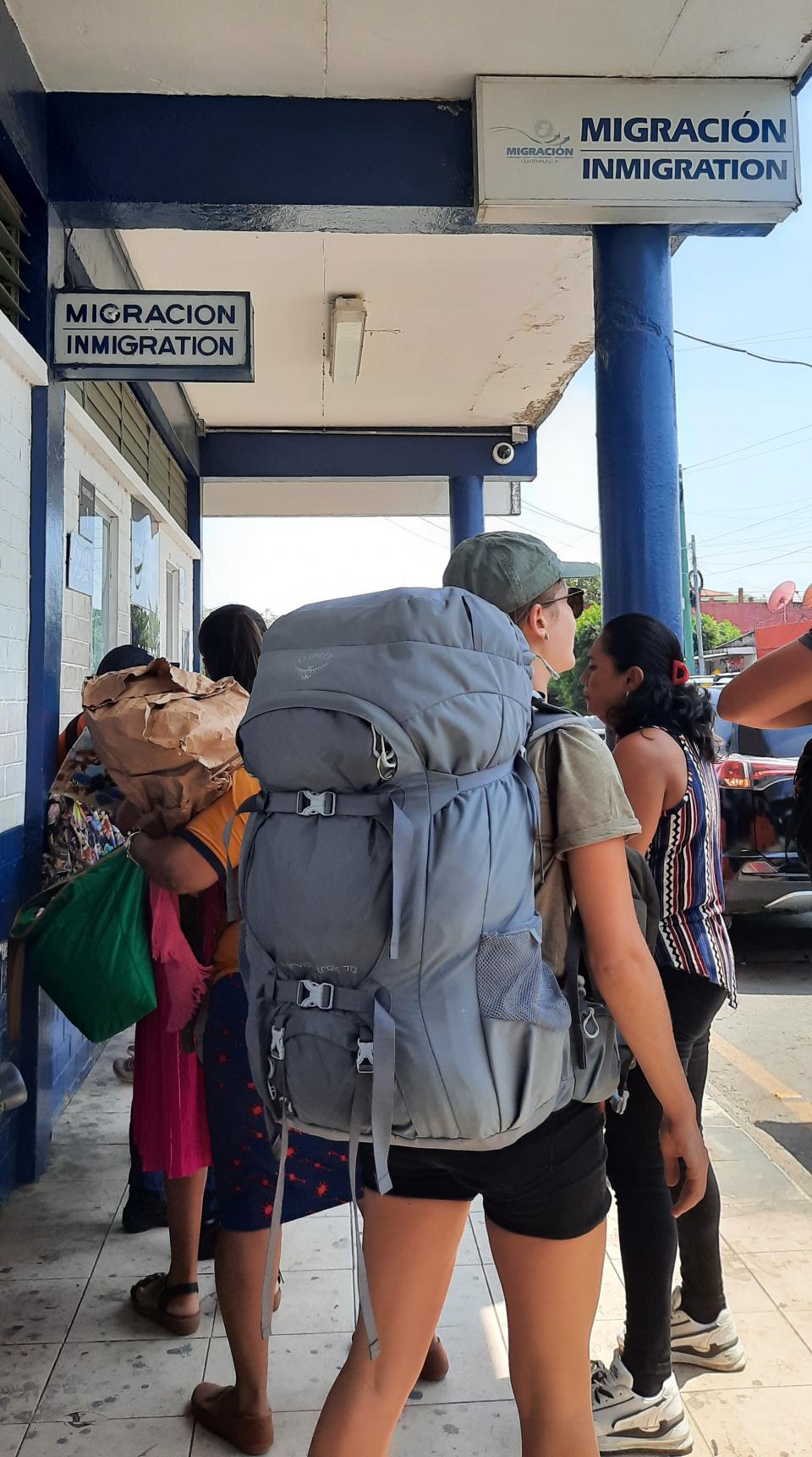 由於我在墨西哥Bacalar買shuttle的車票可以停留貝里斯再到危地馬拉Flores,所以停留了5天4晚的San Ignacio 就再次搭shuttle到危地馬拉。在指定上車點等候,集合時間4點的,但等到4點半左右車終於來了。San Ignacio 距離邊境也是近,大約半小時左右就到了邊境,交離境稅,關員也沒有問問題就放行,之後就走到另一邊的危地馬拉邊關蓋章,檢查行李的手續便完成,可以在附近的街道等候所有客人完成過關上回旅巴。