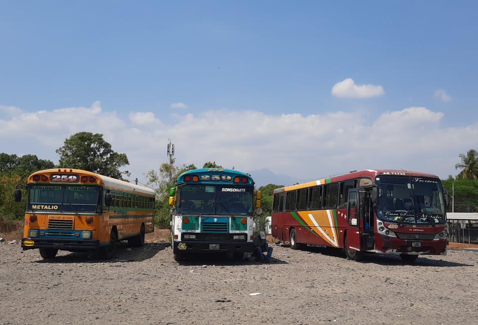 搭乘當地的野雞巴士從危地馬拉Antigua到薩爾瓦多Santa Ana 的長途旅行。 早上八點。 我到達Antigua 巴士站,問問職員哪裡上車,便順利搭乘巴士前往埃斯昆特拉Escuintla。 到達落車過馬路到對面的車站,等候巴士,巴士有寫站名到La Frontera。等候20分鐘左右,跟著其他背包客換乘另一輛巴士前往La Frontera邊境。 當我到達危地馬拉出境邊境時,已經是12點40分左右了。 出境很順利,然後步行20分鐘過一條橋走一段路,就到了薩爾瓦多邊境辦公室。 一位職員就只企在外面,拿了我和另一對德國情侶的護照,只翻了翻我的護照就放行了。 前後不到3分鐘,也沒有蓋章,我就進入薩爾瓦多。