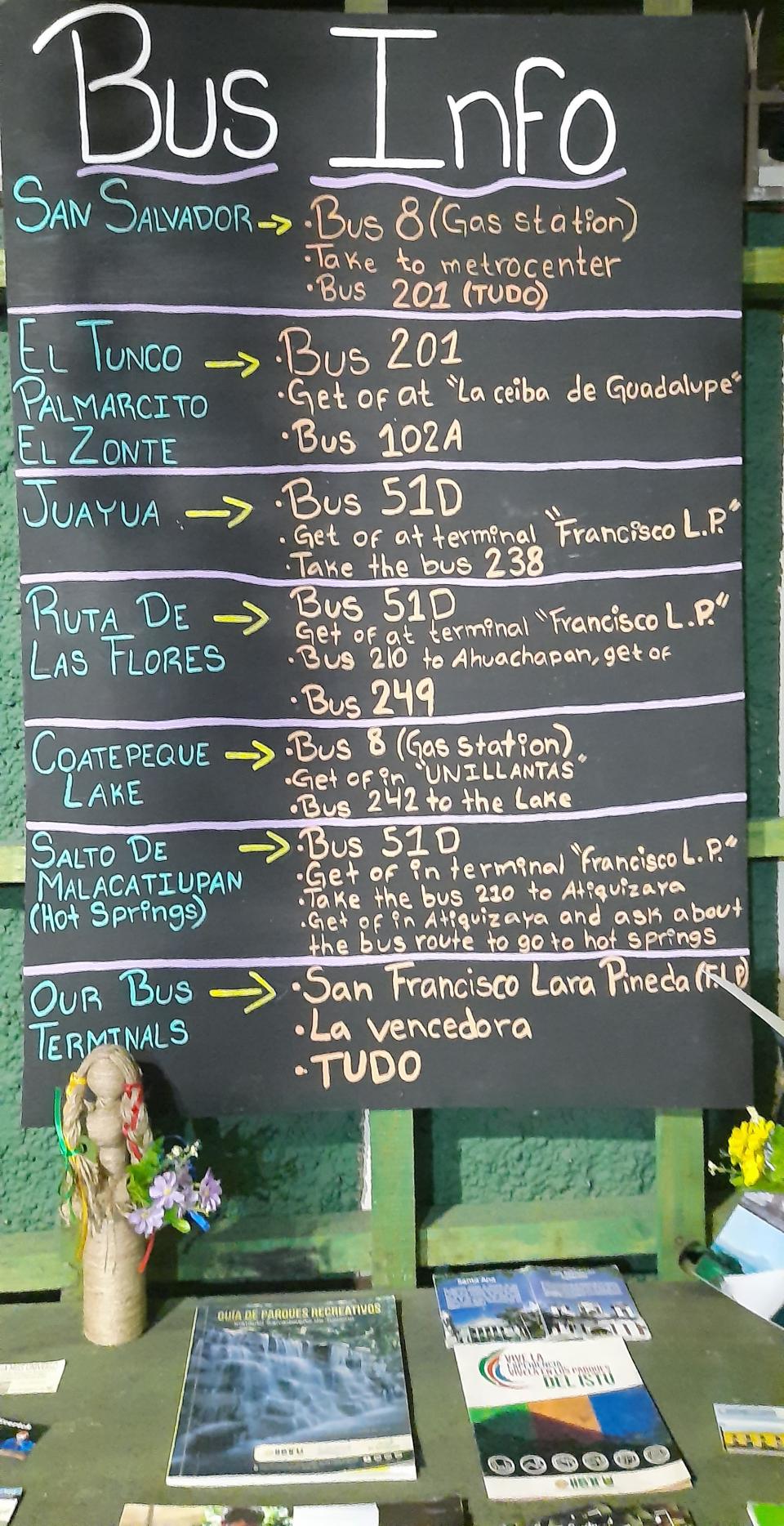 再步行 10 分鐘即可到達前往松索納特 (Sonsonate) 鎮的最近的車站。 然後原站換 216號車到Santa Ana。 下車後我還要換車到青旅,但我一直搭錯巴士,幸運有的巴士司機知道我搭錯就沒有收錢,結果兜兜轉轉我要坐Taxi才到青旅。 由早上8點到晚上差不多19點30分才放下背包,完成一整天跨國邊境之旅。