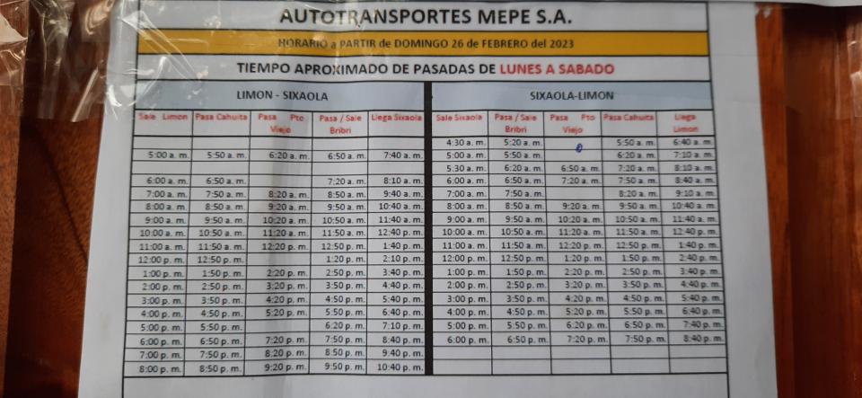 Puerto Viego 至 Sixola 2325pesos