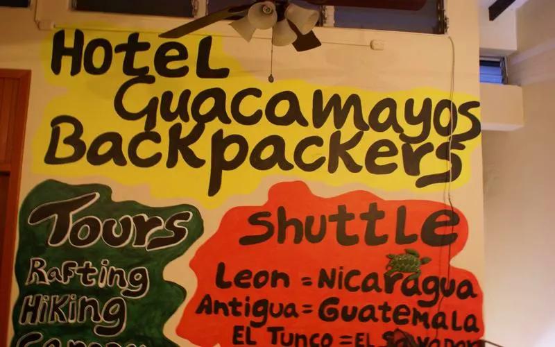 在洪都拉斯La Ceiba 的Hostal Los Guacamayos 訂Shuttle 到尼加拉瓜的León。88美金,真是一個貴的選擇。坐通宵shuttle到León ,由晚上8點到早上11點,大概15小時車程,擠在16坐位小巴,坐足了15人,司機跟隨行職員開著音樂,聊天一整晚,防止司機睡覺,每1.5小時停下休息,如此這般我們一整晚都沒能安睡。