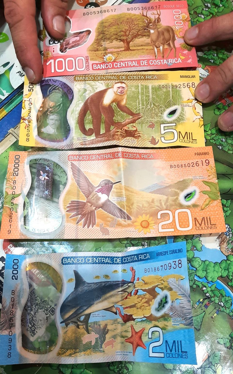 Costa Rica 的紙幣設計很美,都是當地的動物