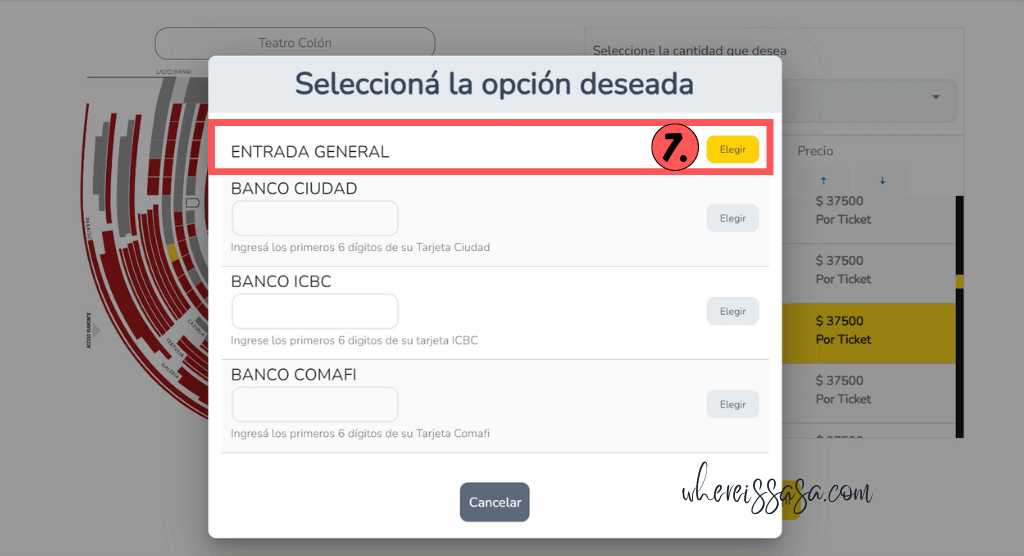 06:跳出的畫面中,按下「ENTRADA GENERAL(一般票)」旁的黃色按鈕