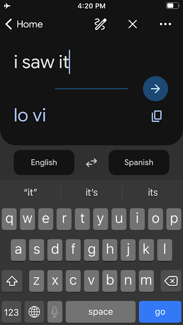 我在四十分鐘的車程中一直用谷歌離線翻譯找尋西文跟他聊天, 回程也是, 以下有一些當時的西文截圖: