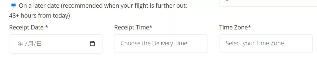 下方有一個選項,可以選擇要立即收到您購買的訂位紀錄,或是晚點收到(可自行設定想收到的日期)。