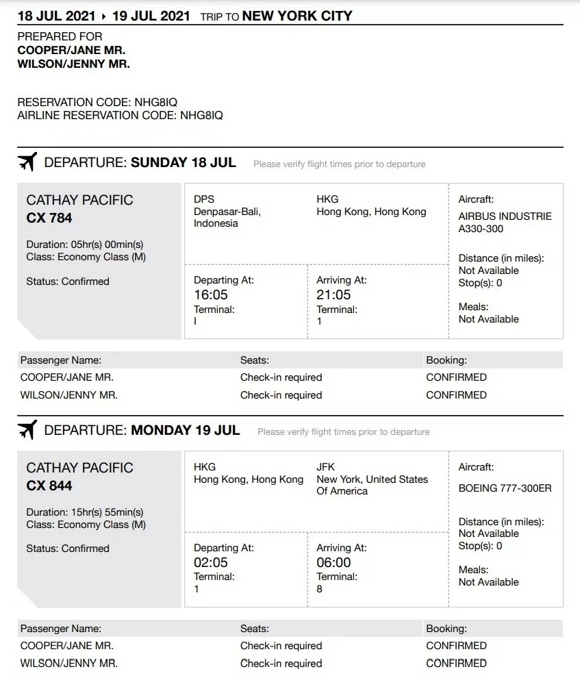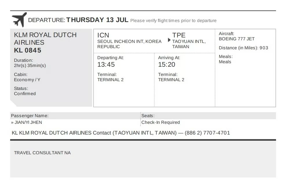 (我當初拿預定號碼去航空公司的網站試試看,真的找得到那筆預訂欸~~)