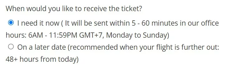(因為一份訂位紀錄只會生效48小時,若你比較晚才需要用到這份機票訂位紀錄,可選擇晚一點再收到)