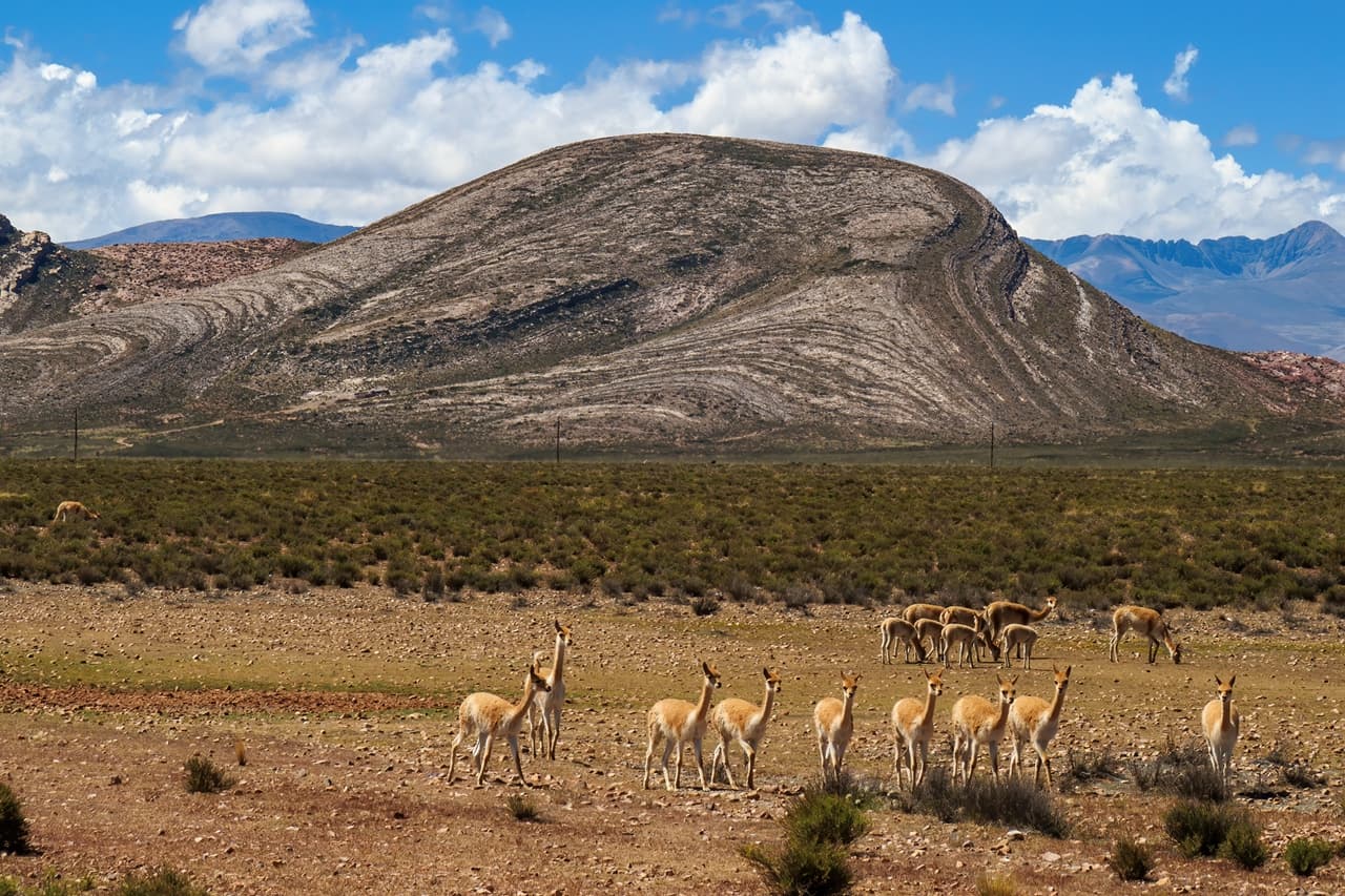 回到Humahuaca,我們沿著9號公路繼續向北前進,離開旱谷進入平坦的玻利維亞高原,人煙變得更稀少、植被也更稀疏,經常能見到野生小羊駝(vicuña)