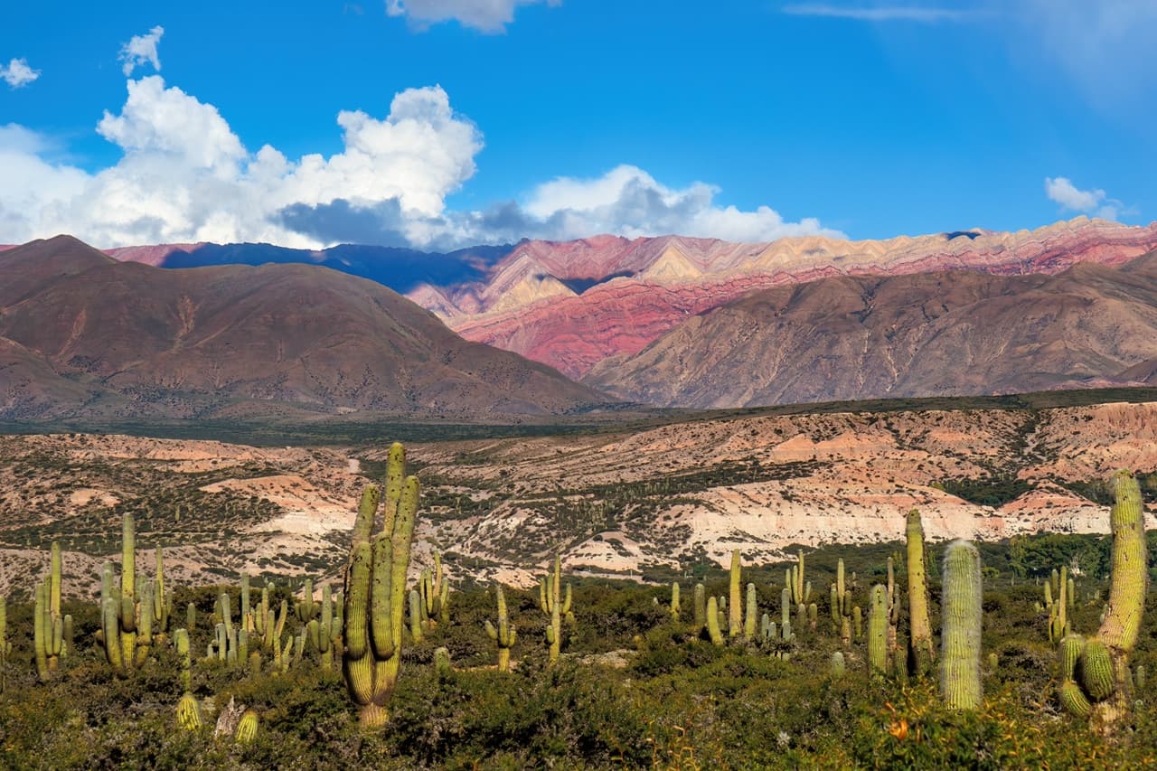 隨處可見成片的仙人掌,後面就是準備要去的14色山(Hornocal,Cerro 14 colores)