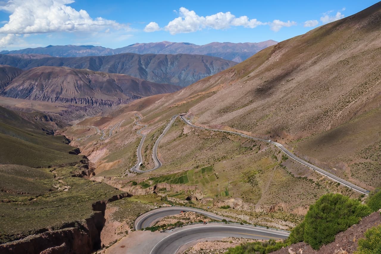 Purmamarca往大鹽沼(Salinas Grandes)的九彎十八拐,翻越4170 m的Cuesta del Lipán埡口,這也是旱谷與Atacama高原、外流區與內流區的地理分界