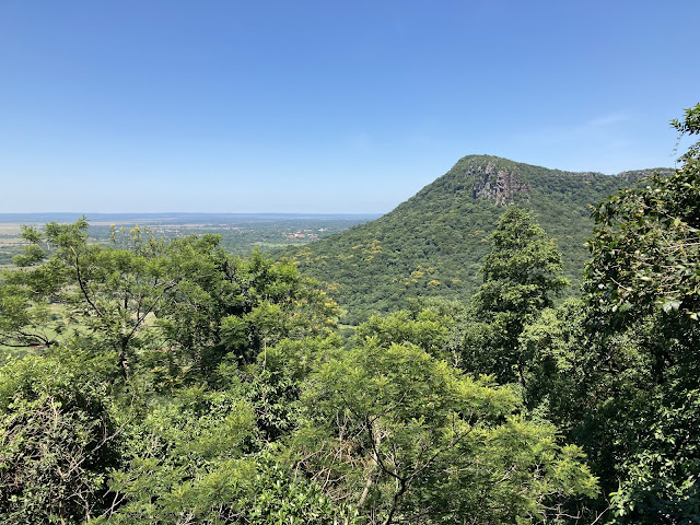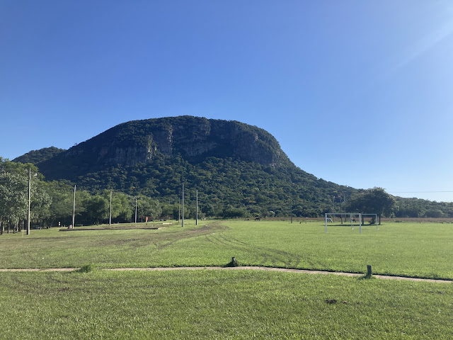 早上再次去同一家咖啡店吃早餐「娜·尼爾達輕食甜點」Na Nilda Cafeteria y Postres, 這次我點cafe cortado,像是卡布奇諾的「告爾多咖啡」,一大杯很好喝10k pyg(約台幣45,上次在烏拉圭喝到小小一杯是台幣120)。我也點了奇巴麵包chipa 5000pyg(好像奇巴不管在哪裡都是統一價5000 pyg)、medialuna con dulce leche 半月可頌夾甜牛奶醬 6000 pyg (吃起來普普)。然後開始踢馬路去登山口,今天天氣更熱!