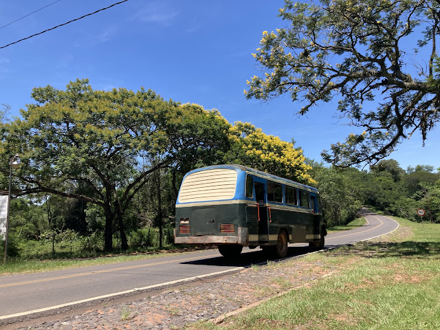 我站在路旁等了三十分鐘, 沒有公車, 倒是有很多汽車經過。我開始想說我是不是要勇敢地伸出大拇指搭便車(巴拉圭應該不危險吧), 還是去對面的度假飯店敲門, 請他們幫我叫一台計程車。
