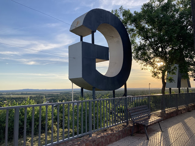 再來, 我步行到附近位在山丘上的公園「佩羅山公園」Parque Cerrro Pero, 從旅館是15分鐘步行距離。我一邊看谷歌地圖一邊找路, 其實附近都是民房住宅區, 一隻體型大的家犬走近我對我吠, 還好主人在門口, 把牠叫走。公園位在小山丘上, 可居高臨下俯瞰巴拉瓜里小鎮。