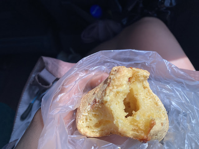 巴士會不時在路上的小鎮停靠, 乘客上上下下,恩卡那西翁至巴拉瓜里的巴士車程約五小時。有一次一個乘客上車坐在我旁邊,是個很ㄎㄨㄞˇ的男子,毛茸茸的手臂直接壓在我的手臂上。一個小販上車販賣巴拉圭的有名小吃chipa,對於沒有大景點的巴拉圭來說,這個巴士chipa文化可以說是旅行中的一大亮點!