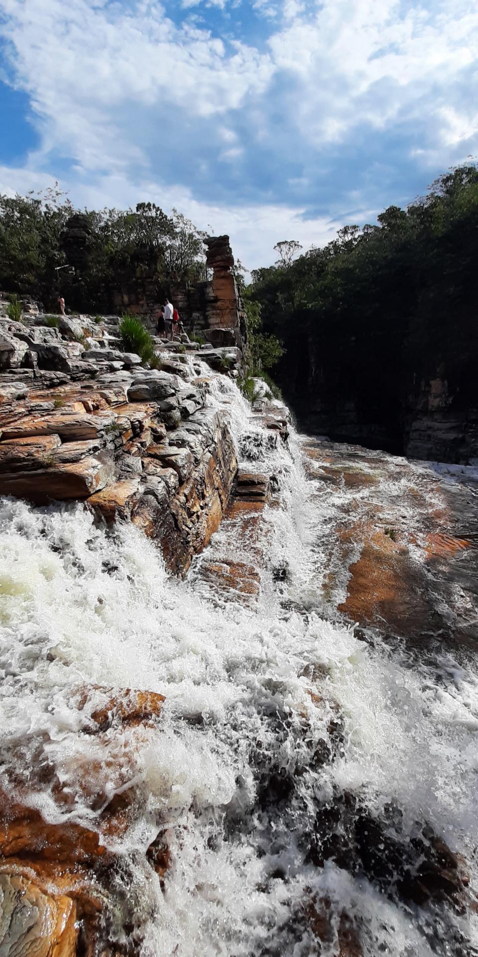 看到瀑布真的把疲累消退,一個很長的瀑布區,水是深茶色很濃,看似很糟但其實都是樹葉腐爛將水性變酸性,加上水底黃色石頭等因素而成。深茶色的水其實很清澈。在瀑布游水,曬太陽,健行到不同位置享受瀑布的清涼,就是巴西最佳消暑方式!!!