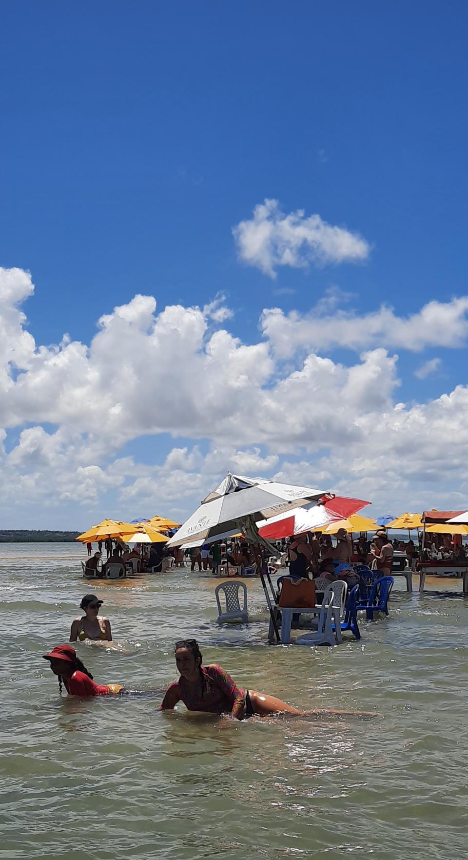 第一站去到一個沙灘,有sales介紹可以遊船,會到個沙洲,有泥漿浴的地方,還可能會見到海豚,所以就付了R$75參加了。