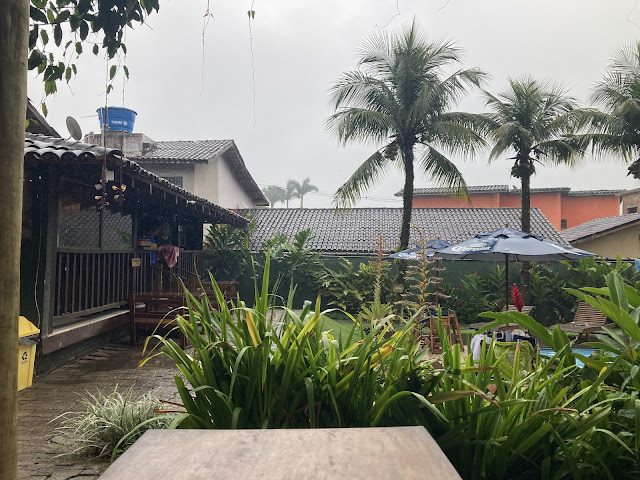 陰雨的天氣。步行十分鐘到我預訂的背包客棧「波管客棧」Pousada Tube。今天晚上是週五, 所以住宿都貴, 這裡是我找到鎮上最便宜的地方, 女生多人背包房一晚33美金, 附豪華早餐。這裡其實是一間大多是雙人房/四人房的旅館, 但有較大的樓中樓房是背包房,一間女生,一間男生。旅館有寬敞的戶外或半戶外的座位空間, 桌椅沙發吊床躺椅一應俱全, 也有一個游泳池。樓中樓的背包房很寬敞, 樓下四床、樓上六床, 但只有一間衛浴, 但走出房門很近的地方有櫃檯的廁所可以使用。