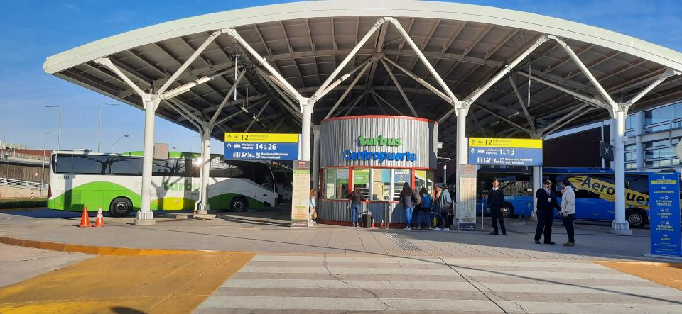 在機場拿了行李差不多到入境大堂,會有一排租車,買巴士票到市中心的櫃枱 可以先買巴士票到最近的鐵路站Pajaritos或巴士總站。