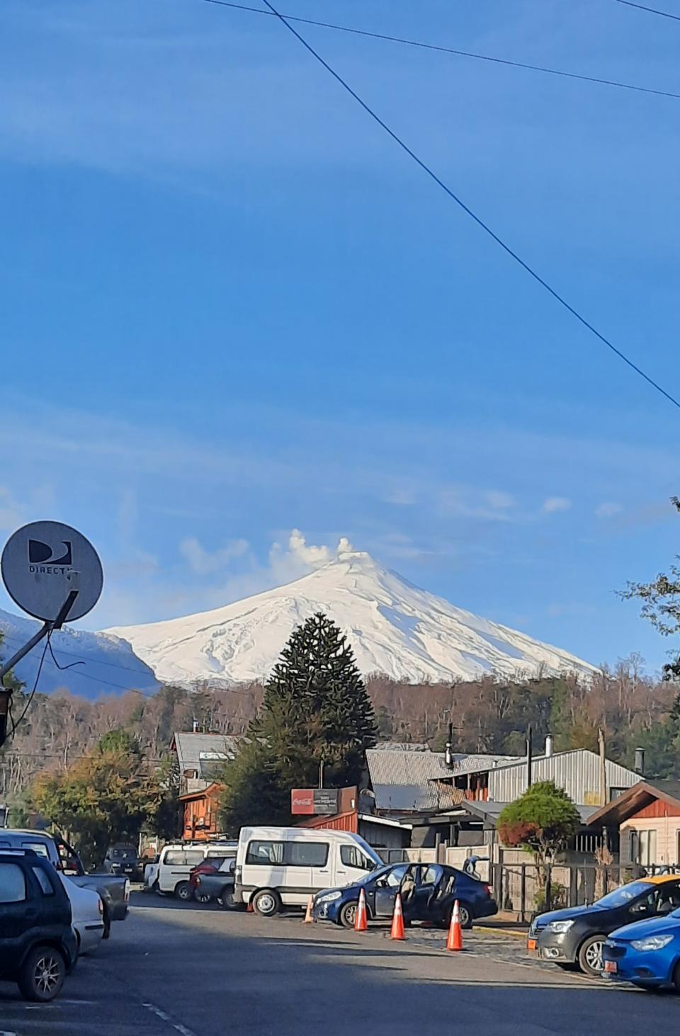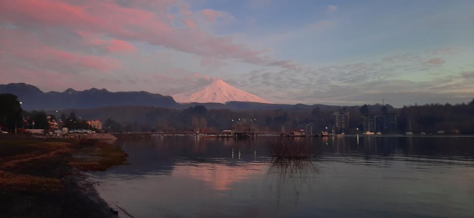 換了住宿去買翌日早上5:30 的巴士票,天知道我不想離開Pucón所以今日給我一個很美麗的天空。看到清晰的火山Villarrica, 冒著煙的活火山積滿厚厚白雪,前一兩天都沒看清楚真身,終於今日得見,好靚好似要召喚我去的。