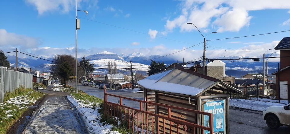 坐機場shuttle到市區3000pesos , 到青旅放行李就出發去逛小鎮了,因為翌日早上7點要到車站往Ushuaia 了。Puerto Natales 因前一天落雪,當下見到周圍都是厚厚積雪,真誇張啊!戰戰兢兢的走,那雪地有時結冰超級滑的。寧願走粉雪地的。那雪很綿好似綿花冰。