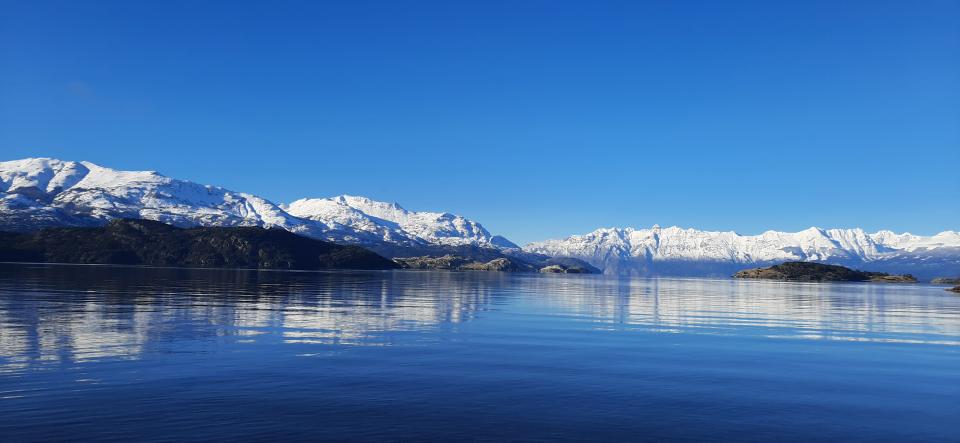 原本約旅行社3點的團,焦急在車等,行車30公里很慢,因為路況也是結冰積雪的。還以為趕不上,結果2點半到達Tranquilo 小鎮,但到碼頭卻被告知旅行社關門沒人,整排旅行社只有一家,還暫時只有我1人。