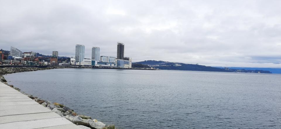 乘搭飛機JetSmart廉航,2次都延誤,都是前一班機剛落地又返回,所以要時間落客,加燃料,所以在南美旅行航班接駁真的要預更多時間,而我飛到Puerto Montt是為了飛到Puerto Natales ,那是Patagonia 百內國家公園最近的鎮。Puerto Montt 蒙特港的機場雖然細但商店比較繁榮,機場shuttle 30蚊港幣搭30分鐘左右,到達Bus Terminal , 一出站看到港灣很美啊~雖然陰天,但海濱公園仍有些人閒逛,整個市感覺悠閒的。我背著15kg背包,竟可以走了20分鐘到青旅。沿途欣賞海景。為什麼不坐的士,因為覺得走路應該不遠,巴士也沒上車因為已被海濱公園吸引了。