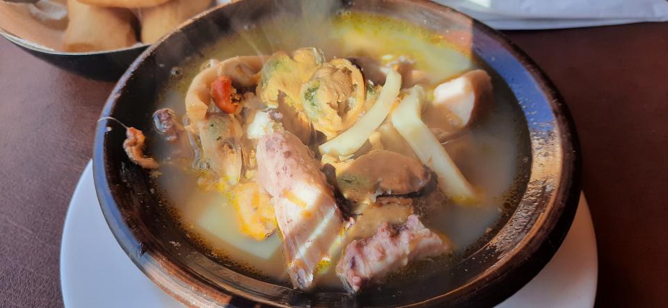 之後逛市場,店不是開滿,賣三文魚,蟹肉,青口貝類,八爪魚等等海產,噢,種類其實不多,蝦類沒有魚種也不多。吃了個貝類Ceviche 沒肚痛,再去餐廳點個海鮮湯。嗯,也要100蚊港幣的。雜錦海鮮有魷魚,青口,八爪魚還有種不認識的貝,加點水加點調味就完成。湯我覺得難以形容的普通,就是清湯,我也在想如果我來煮會怎麼樣。喝了一半,其餘只打包那海鮮,回青旅煮意粉味道更好。哈哈。