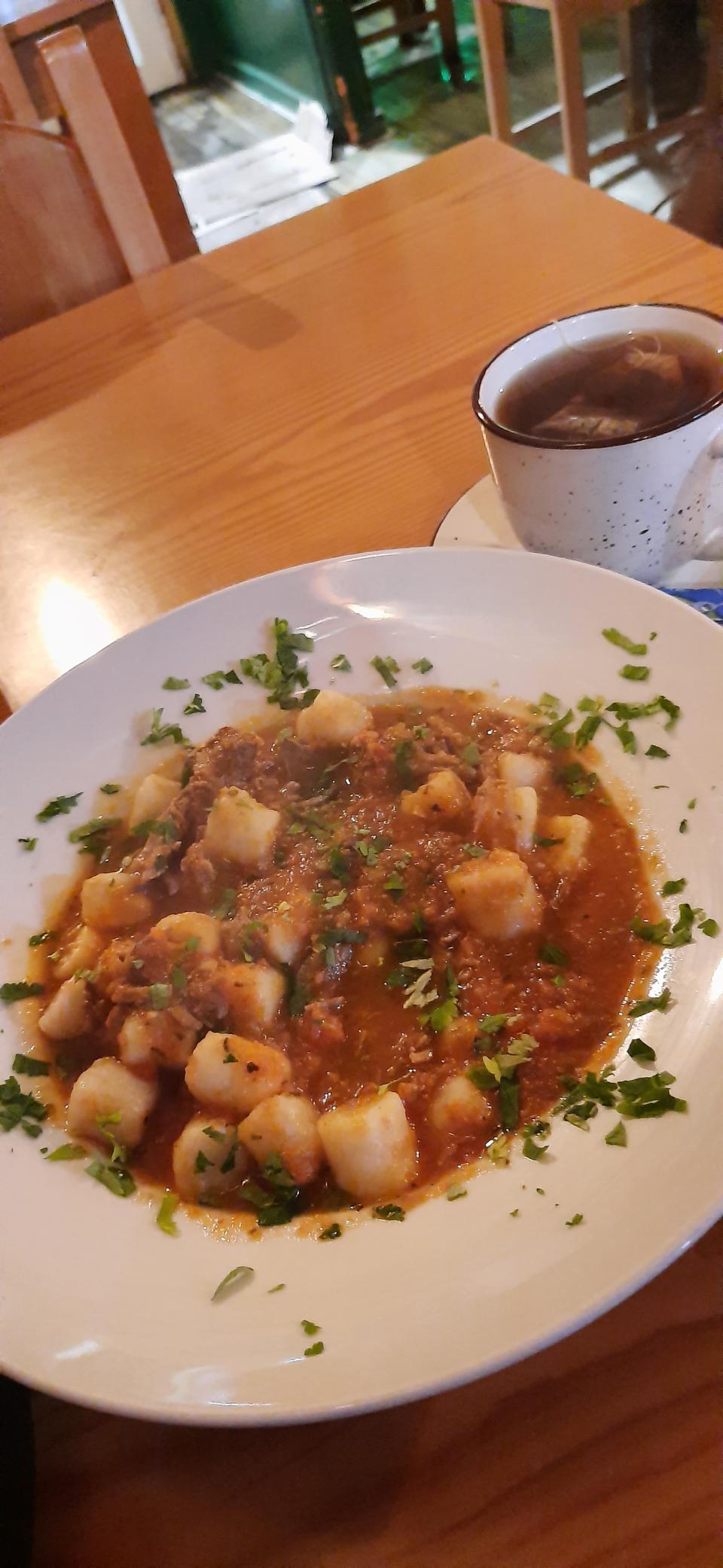 走到海岸邊仍有日落餘輝,但有點風一吹就冷到震,打了卡就找餐廳吃晚餐,找到一家意大利餐廳是火烤薄餅,但我卻選了羊肉Gnocchi很好吃。