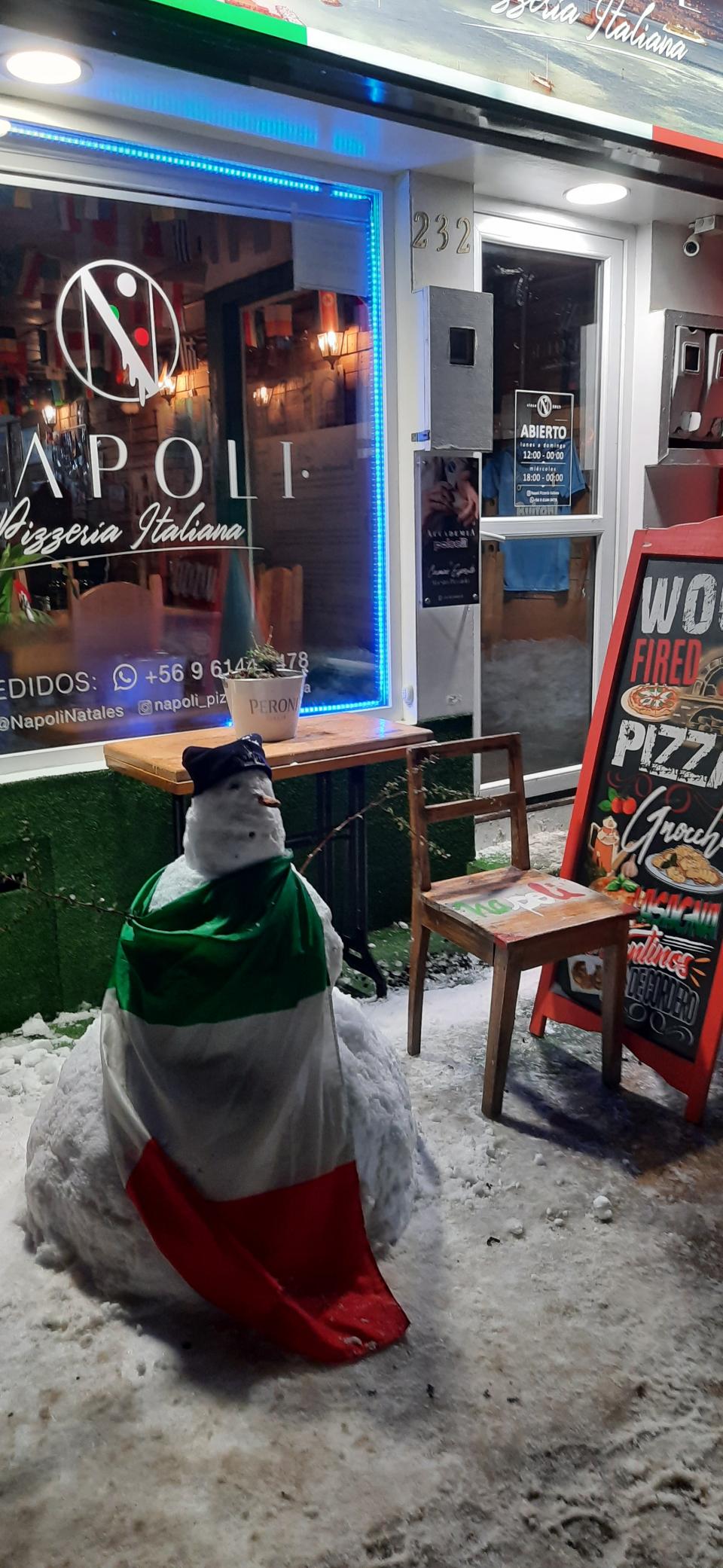 餐廳外堆雪人吸引遊客,這家意大利餐廳Napoli也有很多好評。