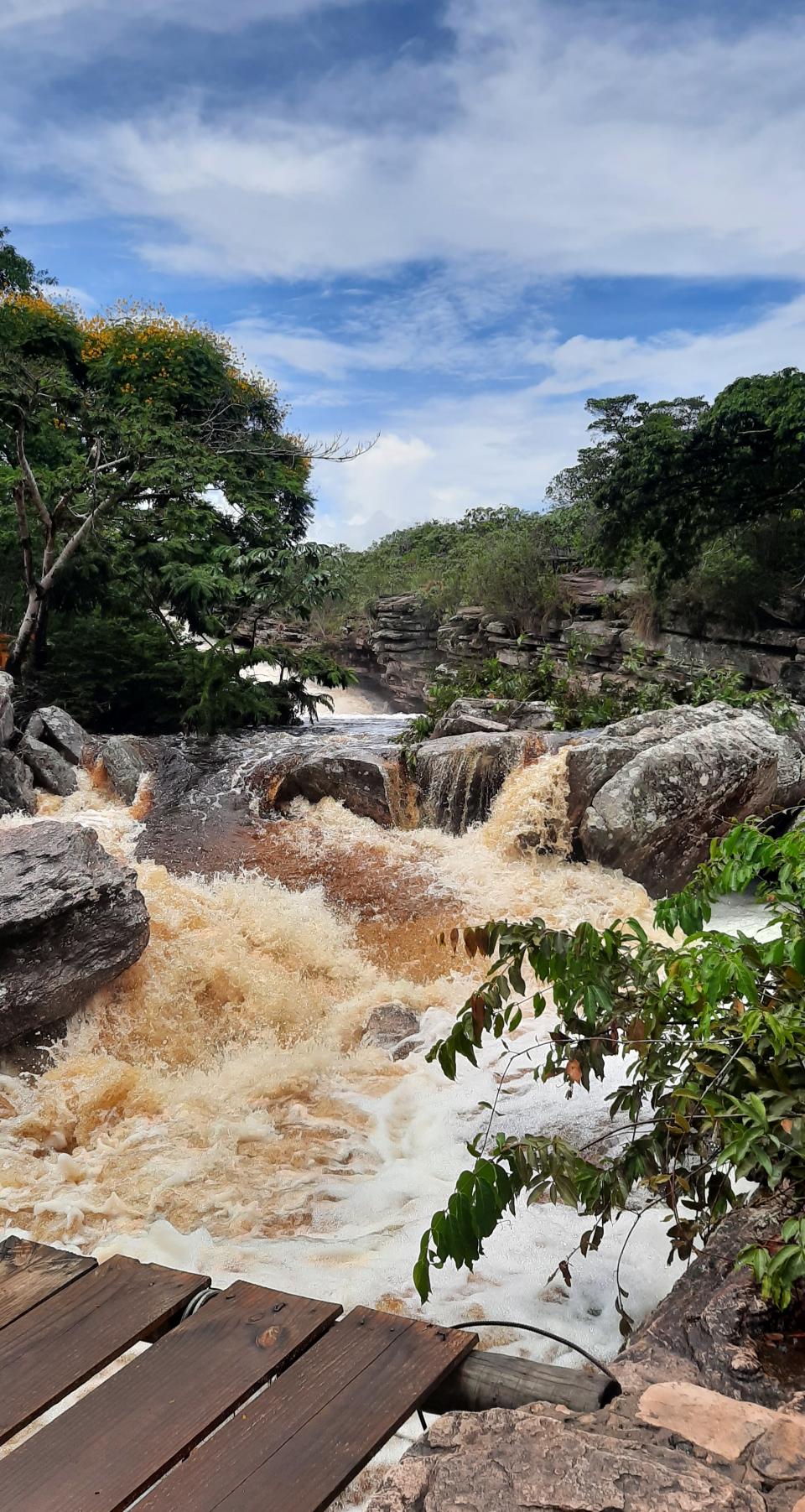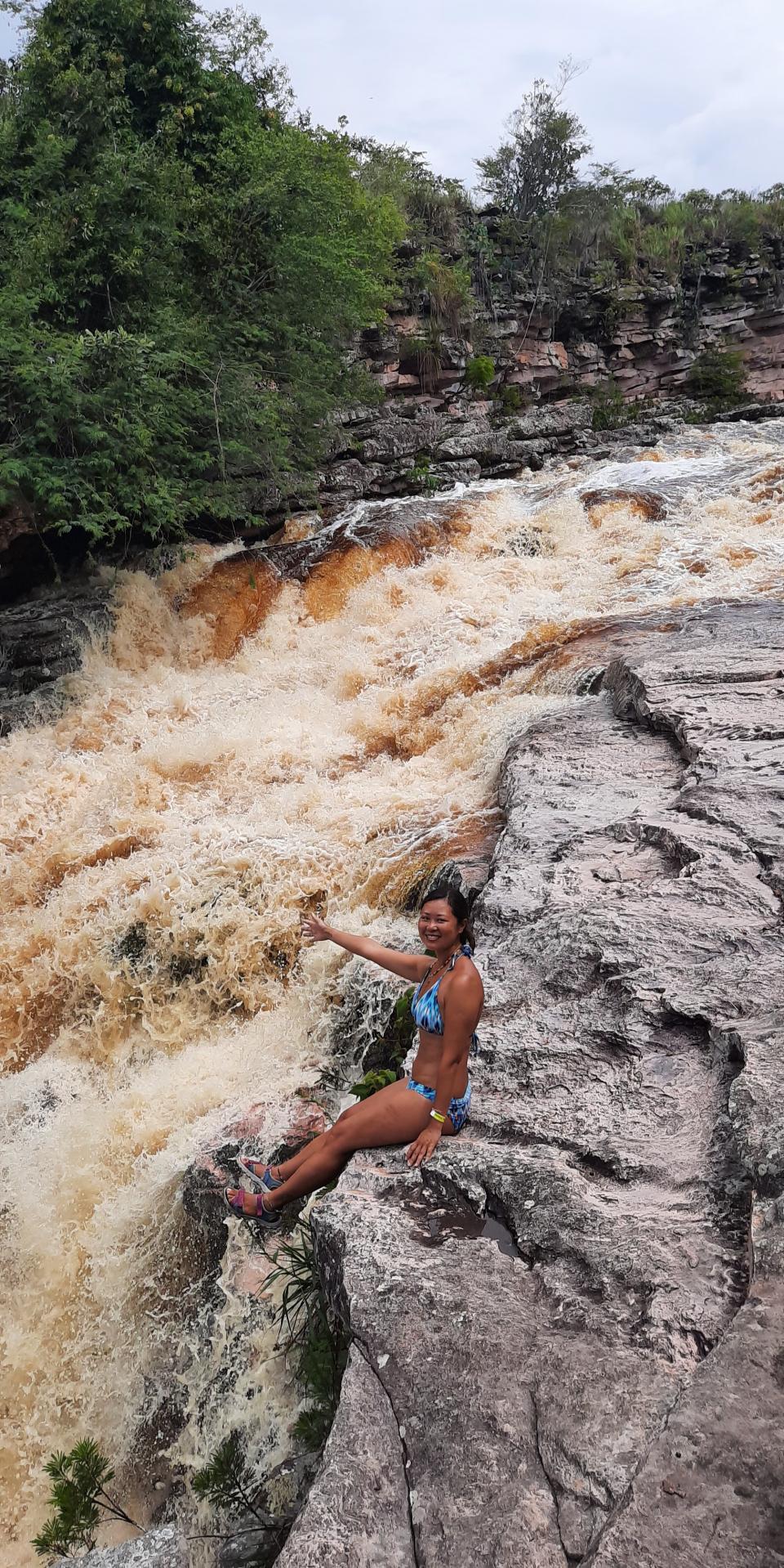 之後到Vale das Picinas 就是一條河有多個天然水池游水。但由於這幾天一直下雨而水位較高,水也洶湧的所以看了一下就再健行到Poço Do Diablo, 魔鬼水池,會見到兩段瀑布,水真的非常澎湃洶湧。不過魔鬼水池部分水位深度只有1.2米又可以落水游泳。面對那茶色的水是很深不可測的感覺,但導遊會提點那裡安全,所以我也跟著一起下水暢泳,非常的爽特別是健行到滿身汗水,那清涼的水令我煥然一新。