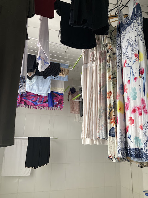早上還是有用宿舍的洗衣房洗衣服, 有洗衣機, 還有非常有趣的掛衣服吊桿。