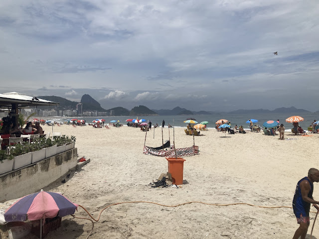 吃飽後沿著海灘繼續走, 這裡真的很像洛杉磯: 有美麗的海灘、遊民(不過他們看起來是真的很窮, 不是在嗑藥)、不少地方聞起來有尿味。撇開這個不談, 我看到許多健美海灘帥哥同性戀情侶, 不害羞地十指緊扣走路, 覺得這裡是同性戀首都, 很喜歡。巴西有不同於其他南美國家的穿著打扮: 女性不害羞地展示很多肉體部分, 乳溝露很深, 很多的體型是胖壯的, 但不是美國的肥軟(莫名其妙的比較)。男性很多是理平頭, 再漂白染成各種鮮豔的顏色。