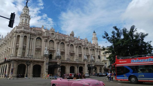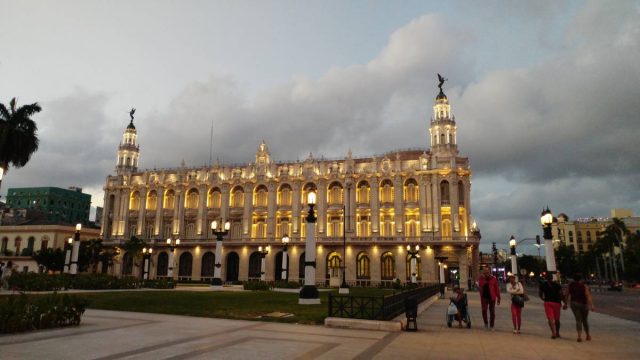 傍晚時分的大劇院,燈光映照下感覺華麗的殖民地風情。