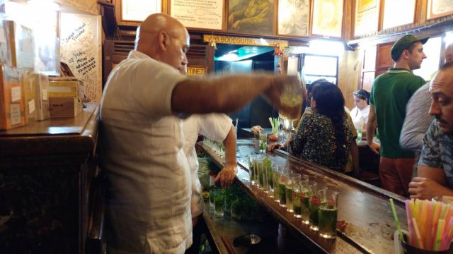 最後一天在Havana, 到餐廳吃龍蝦飯, 很便宜! 再跟著maps.me 指示走到海明威最愛的五分錢酒館喝杯Mojito, 看看酒保只是不斷重覆做同一種mojiti 就知道它有多受歡迎, 基本上遊客都是點mojito 的! 聽說古巴mojito 跟其他的地方不同, 我本著不太好的酒量拼一杯, 在古巴音樂圍繞下, 觀察來五分錢酒館的旅客。很多就西文, 英文的遊客, 也有日本的!