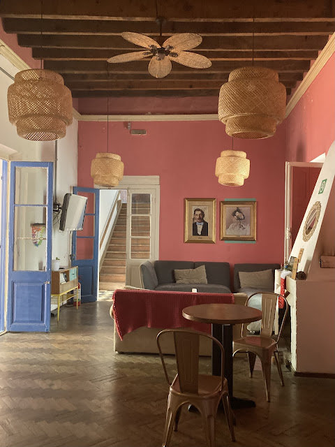 在走去這間旅館的途中剛好經過一間衣服店, 門外放一大車特價衣服, 我買了一件50 uyu的上衣。到了旅館, 安頓好之後, 坐在中庭, 好好地打給我美國的銀行Charles Schwab, 因為我的金融卡在烏拉圭被鎖了。之前以為我已經向銀行報備說會去南美五國旅行了。客服蠻快就接起我的電話, 並幫我解鎖, 終於可以領錢了!