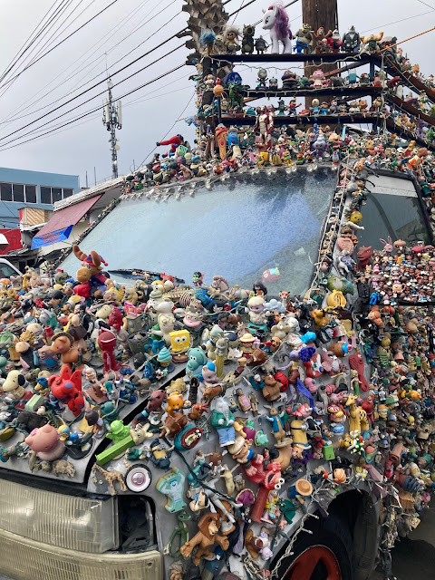 在路上看到一台被玩具覆蓋的車子, 很喜歡。上面有個小牌子, 好像是個修車的人。