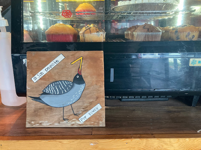 提華納海灘很低調, 大部分的地方沒有海灘、只有海, 靠陸地的地方有水泥牆, 水泥牆上有一條蠻長的濱海人行木棧道, 木棧道旁有三三兩兩的餐廳, 也有很多民宅。我們去一家海景咖啡店吃早餐: Cafe Red Playas (紅海灘咖啡), 我點「西雅圖可麗餅」, 可麗餅內包有生菜、蛋、火腿、起司, 超大一份90MXN(153TWD), 卡布奇諾50MXN(85TWD)。
