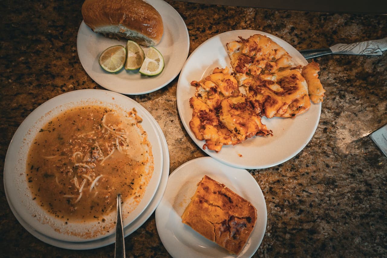 到亞松森時大概凌晨五點,天剛亮 經過昨晚的折騰,此時已又累又餓 (非指夜臥,而是路上碰到的「一點」事情) 找了間有營業的店補充能量,各種層面的能量😌 🇵🇾物價便宜,基本沒看價格,品項有興趣就點了~ 這應該算⋯早餐?此趟南美行吃到最豐盛的早餐